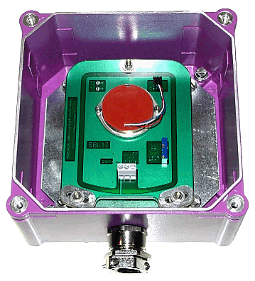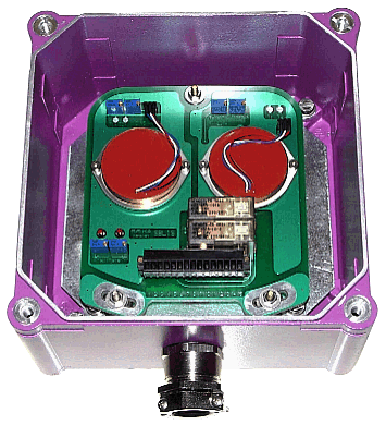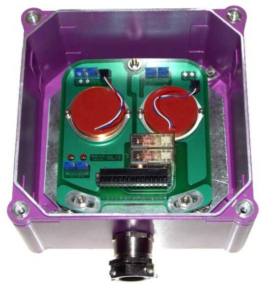 內(nèi)含二只感應(yīng)器之Sensor box (178 x 178 x 100mm - quit big and robust),除了有二組放大器(4...20mA 和0...5Vdc 輸出各一)之外,還有二只Safety-relay可以設(shè)定。 |